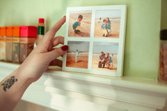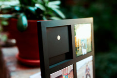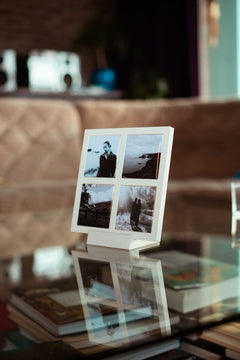 De Mini Galerij is een strak 2x2 frame dat je meteen kan neerzetten. Met voet als je wil, zonder voet als je dat liever hebt.